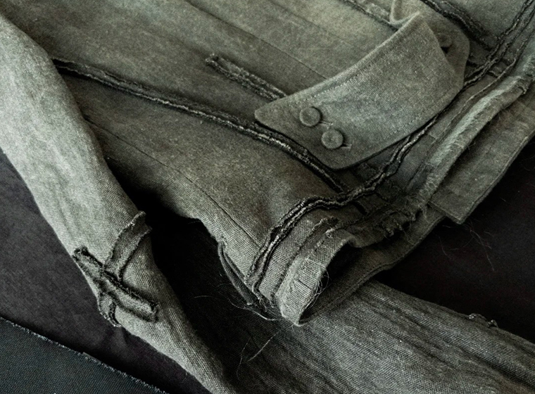Distressing: This includes hand-frayed edges, holes, and whiskers, frequently used on denim or heavyweight canvas jackets.