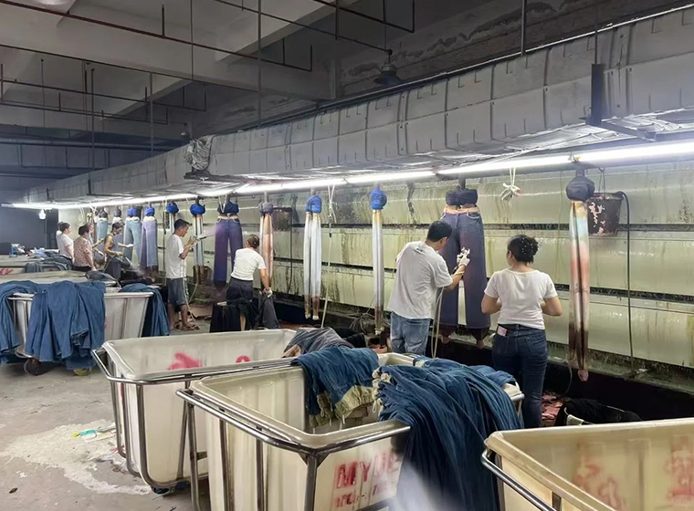 Using electric shears or an automated cutting machine (Auto Cutter) to precisely cut the fabric into individual panels along the marker layout.