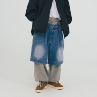 Custom personalised streetwear manufacturers, customized designer acid washed denim shorts splice long sweatpants.