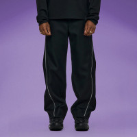 Chanjoye can custom black wide-leg track pants feature reflective zip-up details and a relaxed fit.